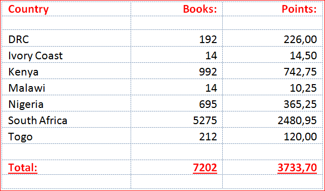 Please find below a summary of the Book Scores for April 2014 from the African Continent. Please click on the following link for details per temple: Africa Book Scores – April 2014