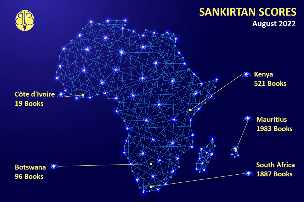 Sankirtana Scores - 2022Africa Sankirtana Scores – August 2022 Dear Devotees, Please find below a summary of the Sankirtana Scores for August 2022 from the African Continent. Please click on the download link for details per temple: Africa Detailed Sankirtana Report – August 2022Download *Historical scores have been updated due to late submissions Rate this:Share this: Click to share on WhatsApp (Opens in new window) WhatsApp Click to email a link to a friend (Opens in new window) Email TweetMore Click to print (Opens in new window) Print Click to share on Reddit (Opens in new window) Reddit Share on TumblrLike Loading... Related