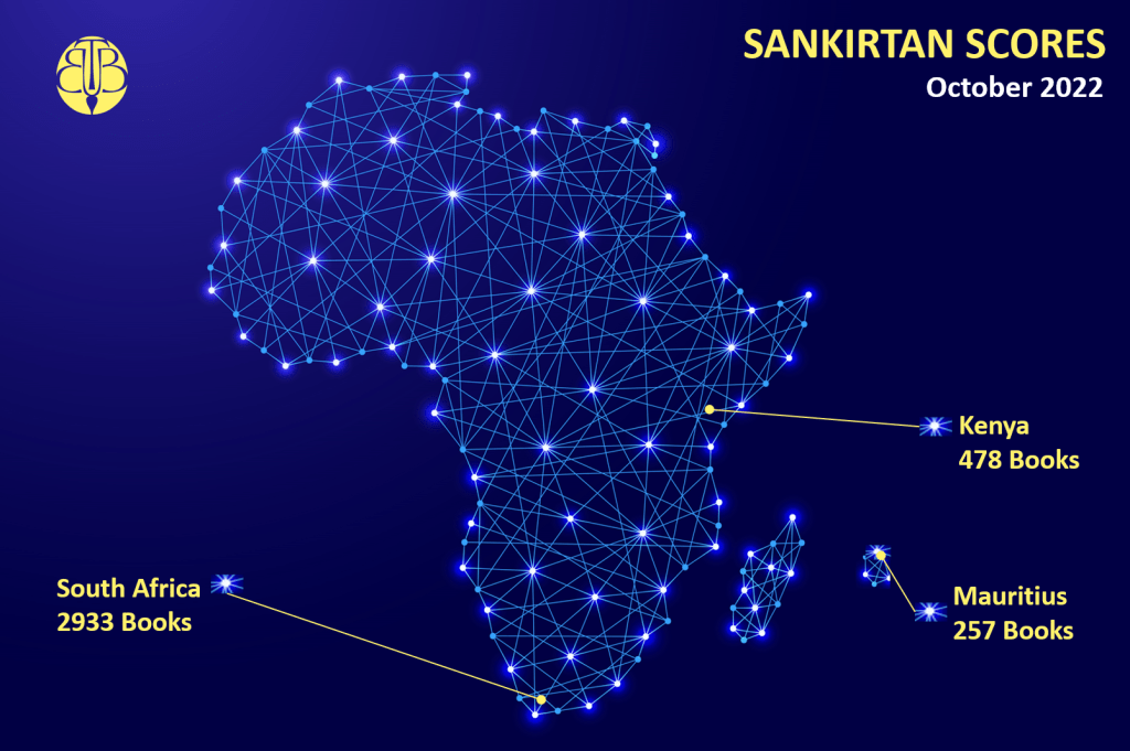 Sankirtana Scores - 2022Africa Sankirtana Scores – October 2022 Dear Devotees, Please find below a summary of the Sankirtana Scores for October 2022 from the African Continent. Please click on the download link for details per temple: Africa Detailed Sankirtana Report – October 2022Download *Historical scores have been updated due to late submissions Rate this:Share this: Click to share on WhatsApp (Opens in new window) WhatsApp Click to email a link to a friend (Opens in new window) Email TweetMore Click to print (Opens in new window) Print Click to share on Reddit (Opens in new window) Reddit Share on TumblrLike Loading... Related