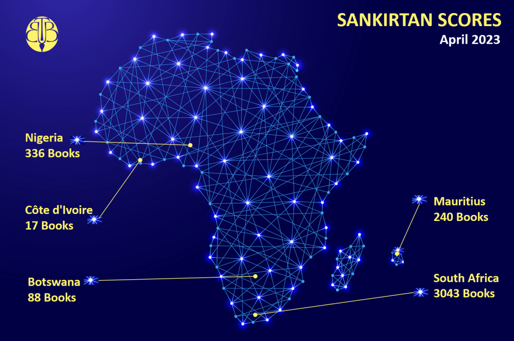 Sankirtana Scores - 2023Africa Sankirtana Scores – April 2023 Dear Devotees, Please find below a summary of the Sankirtana Scores for April 2023 from the African Continent. Please click on the download link for details per temple: Africa Detailed Sankirtana Report – April 2023Download Rate this:Share this: Click to share on WhatsApp (Opens in new window) WhatsApp Click to email a link to a friend (Opens in new window) Email TweetMore Click to print (Opens in new window) Print Click to share on Reddit (Opens in new window) Reddit Share on TumblrLike Loading... Related