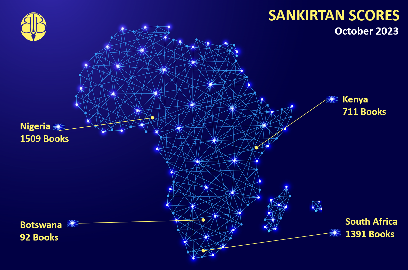 Sankirtana Scores - 2023Africa Sankirtana Scores – October 2023 Dear Devotees, Please find below a summary of the Sankirtana Scores for October 2023 from the African Continent. Please click on the download link for details per temple: Detailed Sankirtana Results per TempleDownload Rate this:Share this: Click to share on WhatsApp (Opens in new window) WhatsApp Click to email a link to a friend (Opens in new window) Email TweetMore Click to print (Opens in new window) Print Click to share on Reddit (Opens in new window) Reddit Share on TumblrLike Loading... Related