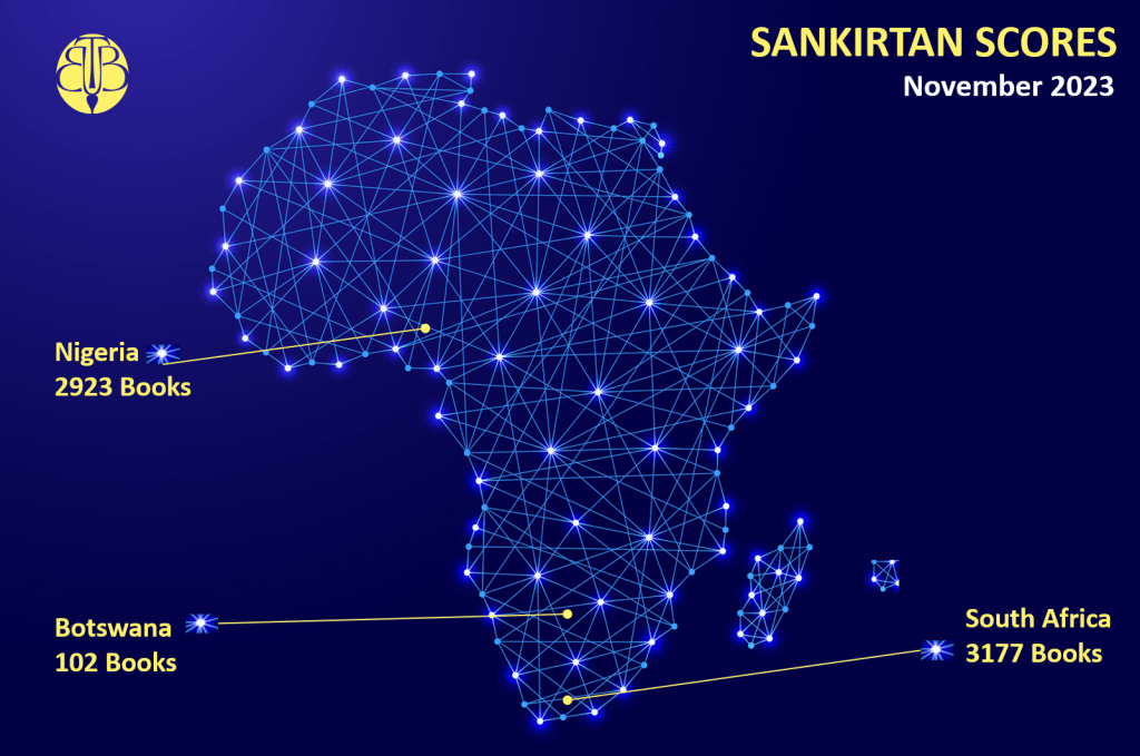 Sankirtana Scores - 2023Africa Sankirtana Scores – November 2023 Dear Devotees, Please find below a summary of the Sankirtana Scores for November 2023 from the African Continent. Please click on the download link for details per temple: Detailed Sankirtana results per Temple – November 2023Download Rate this:Share this: Click to share on WhatsApp (Opens in new window) WhatsApp Click to email a link to a friend (Opens in new window) Email TweetMore Click to print (Opens in new window) Print Click to share on Reddit (Opens in new window) Reddit Share on TumblrLike Loading... Related