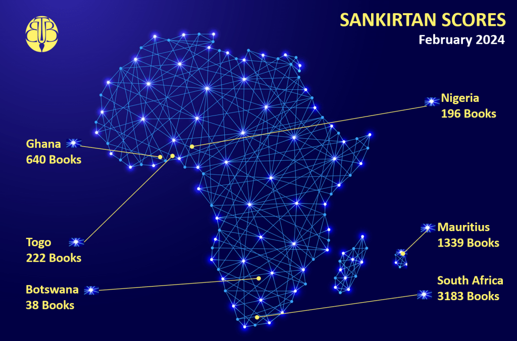 Sankirtana Scores 2024Africa Sankirtana Scores – February 2024 Dear Devotees, Please find below a summary of the Sankirtana Scores for February 2024 from the African Continent. Please click on the download link for details per temple: Detailed Sankirtana results per Temple – February 2024Download Rate this:Share this: Click to share on WhatsApp (Opens in new window) WhatsApp Click to email a link to a friend (Opens in new window) Email TweetMore Click to print (Opens in new window) Print Click to share on Reddit (Opens in new window) Reddit Share on TumblrLike Loading... Related