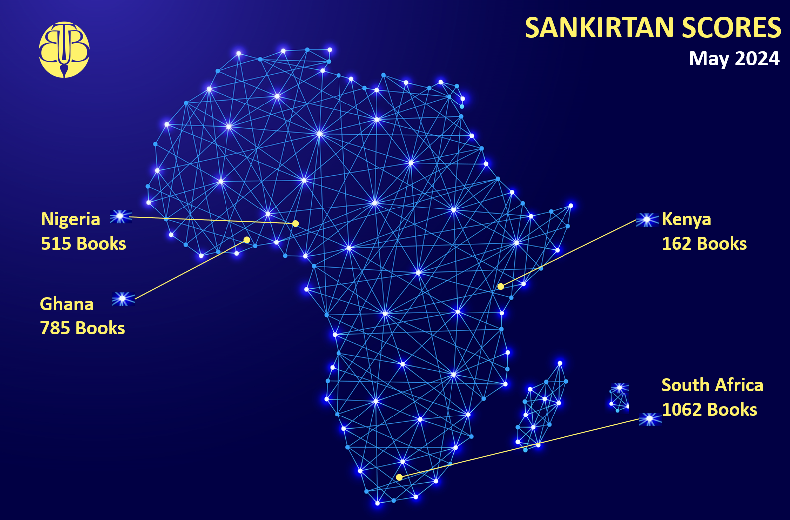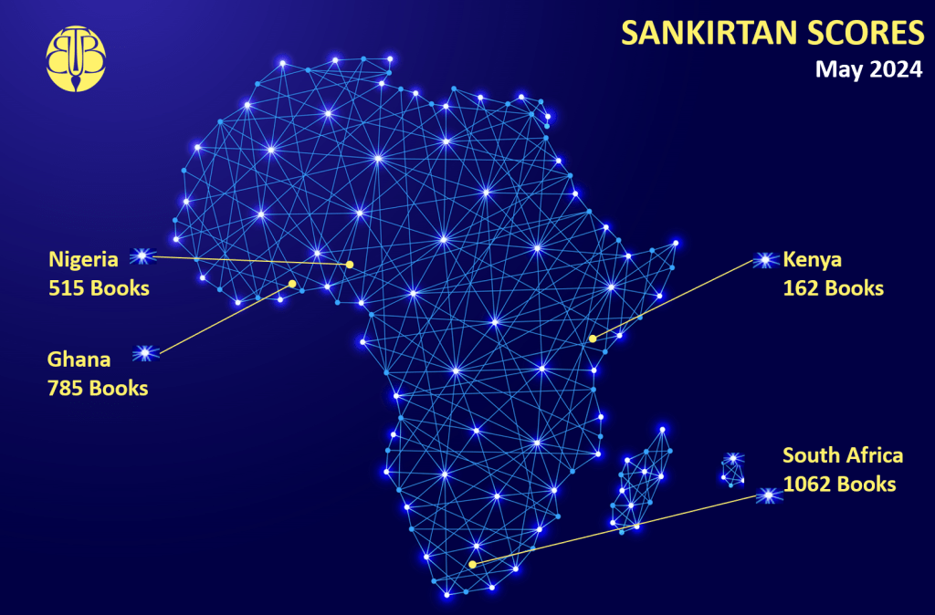 Sankirtana Scores 2024Africa Sankirtana Scores – May 2024 Dear Devotees, Please find below a summary of the Sankirtana Scores for May 2024 from the African Continent. Please click on the download link for details per temple: Detailed Sankirtana results per Temple – May 2024Download Rate this:Share this: Click to share on WhatsApp (Opens in new window) WhatsApp Click to email a link to a friend (Opens in new window) Email TweetMore Click to print (Opens in new window) Print Click to share on Reddit (Opens in new window) Reddit Share on TumblrLike Loading... Related