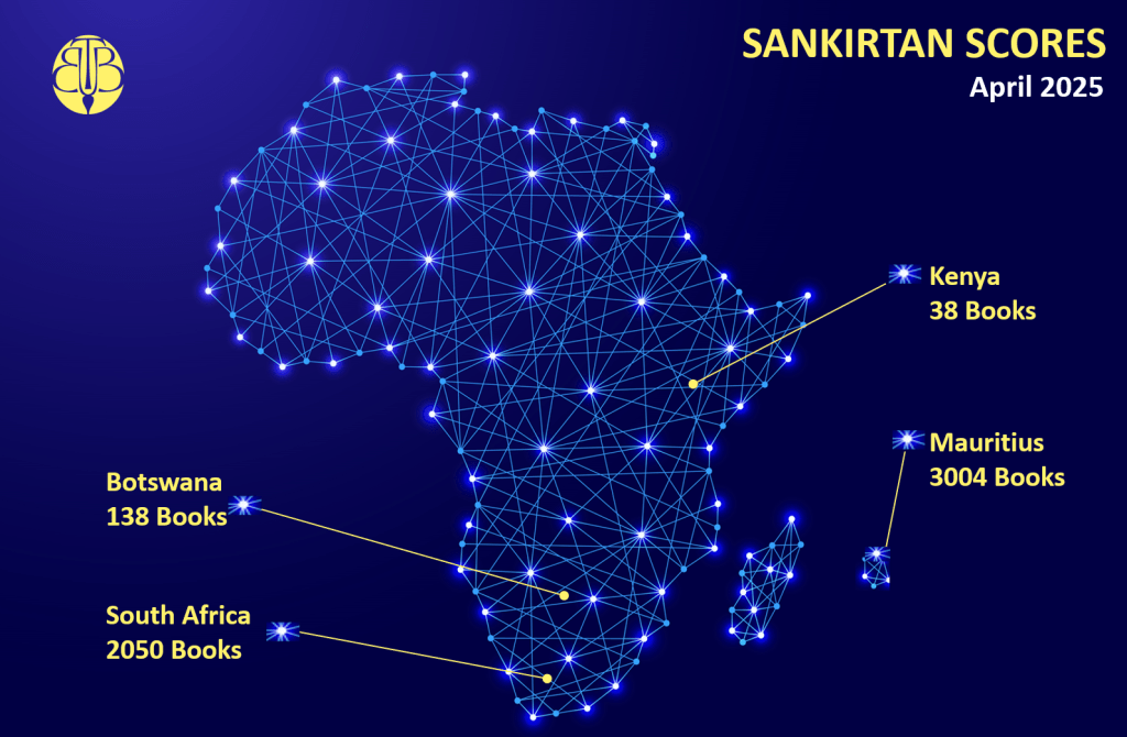 Sankirtana Scores 2025Africa Sankirtana Scores – April 2025 Dear Devotees, Please find below a summary of the Sankirtana Scores for April 2025 from the African Continent. Please click on the download link for details per temple: Africa Book Scores – April 2025Download Rate this:Share this: Click to share on WhatsApp (Opens in new window) WhatsApp Click to email a link to a friend (Opens in new window) Email TweetMore Click to print (Opens in new window) Print Click to share on Reddit (Opens in new window) Reddit Share on TumblrLike Loading... Related