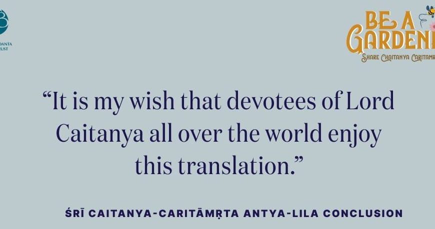 After months of enthusiastic endeavor in sharing the transformative messages of the Bhagavatam and Bhagavad Gita far and wide, it’s now time to replenish and water our seeds of Bhakti by immersing ourselves in an ocean of spiritual nourishment – the Sri Caitanya Caritamrita! The Be a Gardener campaign is here to support and facilitate our regular reflection on the Caitanya Caritamrita. Commencing on January 23 and running until March 17, this … Continue reading Be a Gardener 2022