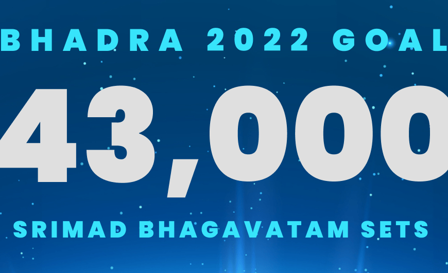 The Bhadra Campaign is back! Last year the Global Sankirtan team distributed a total of 35 432 Srimad Bhagavatam sets and the African Sankirtan team successfully distributed a total of 241 Srimad Bhagavatam sets. The 2022 Bhadra campaign runs from Gaura Purnima till Bhadra Purnima (18 March to 10 September). Let us get together as one team and distribute the Srimad Bhagavatam as far and … Continue reading The Bhadra Campaign is Back!