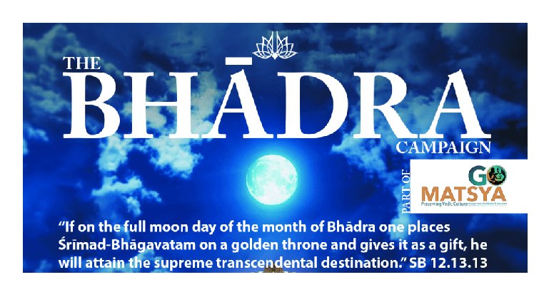The Bhadra Campaign is back! Last year the Global Sankirtan team distributed a total of 35 432 Srimad Bhagavatam sets and the African Sankirtan team successfully distributed a total of 241 Srimad Bhagavatam sets. The 2022 Bhadra campaign runs from Gaura Purnima till Bhadra Purnima (18 March to 10 September). Let us get together as one team and distribute the Srimad Bhagavatam as far and … Continue reading The Bhadra Campaign is Back!