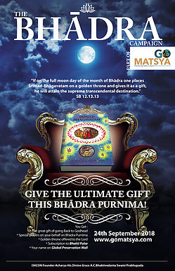 In the Srimad-Bhagavatam it is stated “If on the full moon day of the month of Bhadra one places Srimad-Bhagavatam on a golden throne and gives it as a gift, he will attain the supreme transcendental destination.” SB 12.13.13